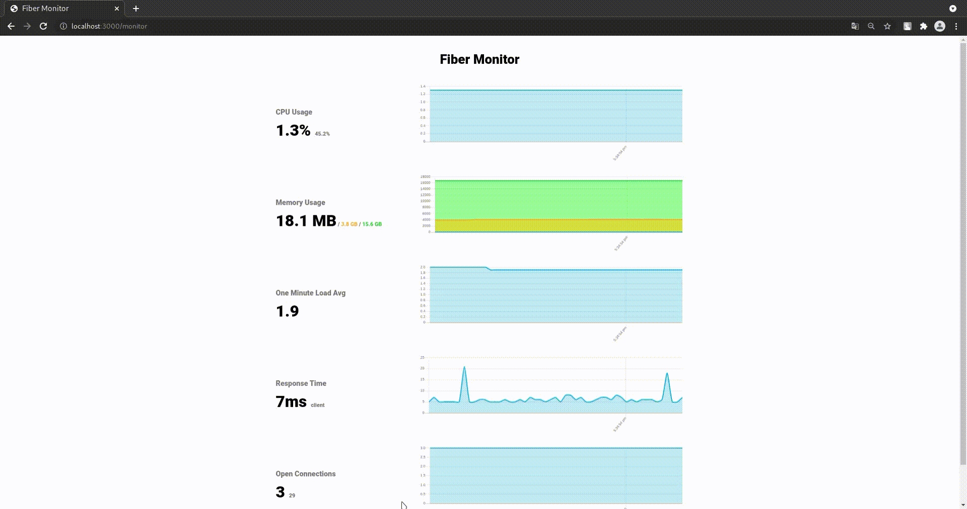 Monitor 미들웨어는 express-status-monitor에서 영감을 받아 Fiber를 위해 서버 메트릭을 보고합니다.